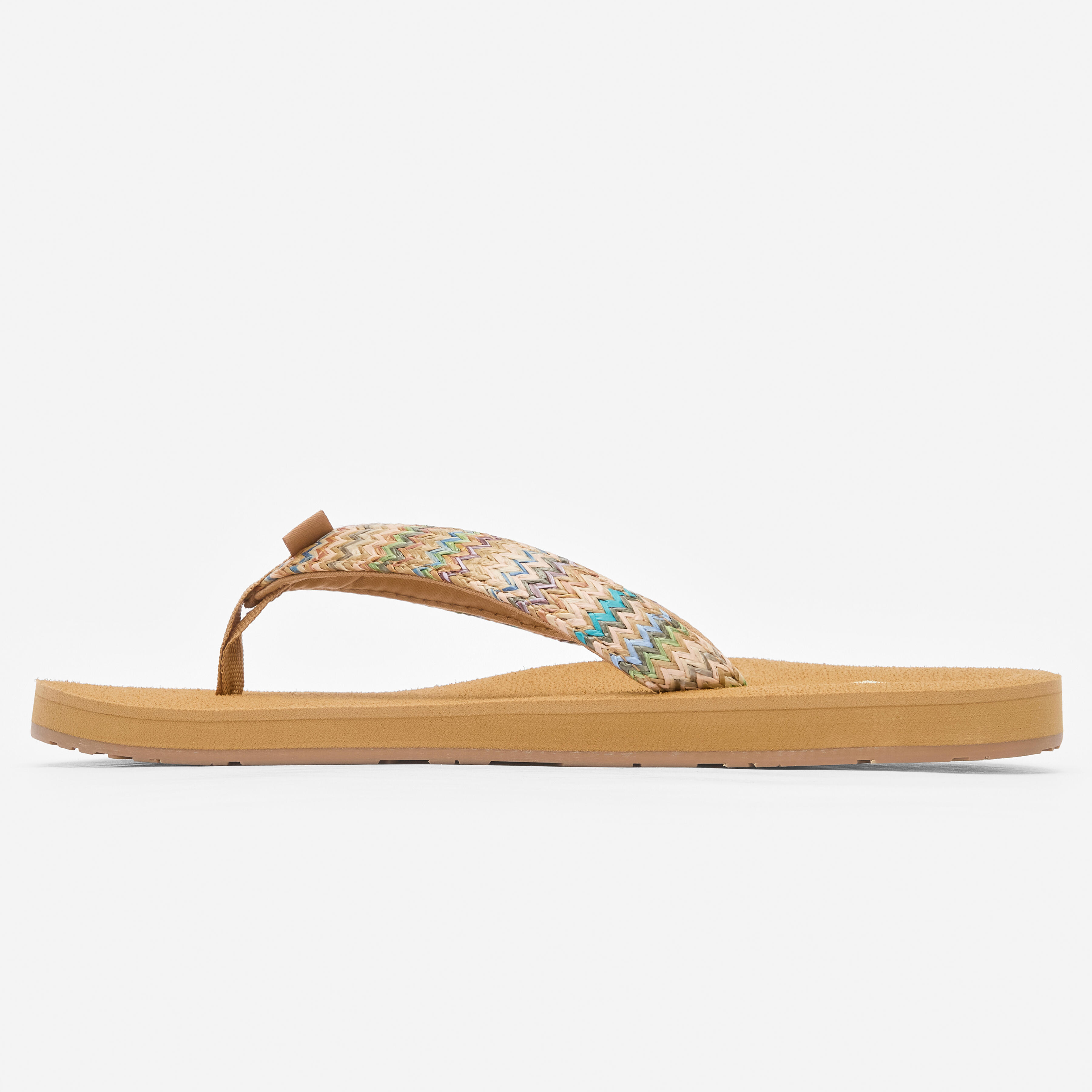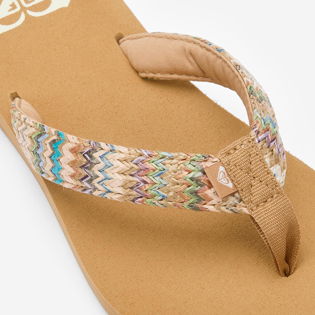 כפכפי האצבע של Roxy הם נוחים במיוחד עם גפה מבד וסוליות מספוג זיכרון.
